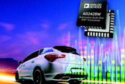 La nouvelle série AD242x se caractérise par des niveaux de puissance d’émission configurables, grâce auxquels les développeurs peuvent adapter les performances de leur système aux exigences de compatibilité électromagnétique des équipementiers (OEM), un critère de conception-clé pour tous les systèmes d’infodivertissement automobiles d’une grande richesse fonctionnelle. Ces nouveaux émetteurs-récepteurs proposent par ailleurs des possibilités d’utilisation étendues concernant la connectivité des microphones et réduisent de façon considérable la complexité du câblage en distribuant les données audio et de contrôle, ainsi que les signaux d’horloge et d’alimentation, sur un seul câble à paire torsadée non blindé. Outre une réduction sensible du coût du système, ces caractéristiques conviennent idéalement aux nouvelles applications multi-microphones, telles que l’annulation active du bruit, les communications à bord des véhicules ou la conduite autonome. Référencés AD2426W, AD2427W et AD2428W, ces nouveaux composants sont entièrement compatibles avec les autres membres de la série, ce qui simplifie la mise à niveau et réduit les délais de commercialisation.
