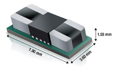 Taille ultra compacte : Cette solution complète de 80 mm2, de seulement 1,5 mm de hauteur, est constituée de deux condensateurs d’E/S et de deux résistances.