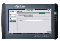 Le MT1000A Network Master Pro est un testeur portable permettant d’évaluer la qualité de la transmission de différents réseaux de télécommunication, fonctionnant à un débit compris entre 10 Mbit/s et 100 Mbit/s. Compatible RFC2544 et Y.1564, il supporte également de nombreux autres standards de test d’évaluation réseau, dont les tests Sync-E et IEEE 1588v2. Utilisé conjointement avec l’oscillateur hautes performances GPS Disciplined Oscillator MU100090A disponible en option, il permet les tests de synchronisation des délais de latence basés sur les données temporelles du GPS, ainsi que les mesures de latence unidirectionnelles haute précision entre deux unités MT1000A distantes.