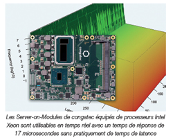 Le défi pour mettre en oeuvre un comportement temps réel Linux dur réside dans la maîtrise de toutes les couches de traitement depuis le BIOS jusqu’au noyau Linux et l’espace utilisateur, puisque les capacités temps réel globales ne dépassent celles du lien le plus faible de la chaîne. De plus, les processeurs modernes comme la gamme Skylake d’Intel proposent un large choix de fonctions basse consommation qui doivent être équilibrées pour convenir à l’informatique temps réel. Avec une exécution dans des racks standards, l’assurance qualité d’OSADL atteste que les Server-on-Modules conga-TS170 sont parfaits pour toute application temps réel. Les marchés visés pour ces stations de travail et cartes serveur haut de gamme, qui apportent aussi des traitements graphiques de qualité, sont : les équipements de test et mesure haut débit, les systèmes dorsaux dans l’imagerie médicale, les stations de travail industrielles hautes performances ainsi que les systèmes d’inspection visuelle et les plates-formes de connaissance situationnelle.