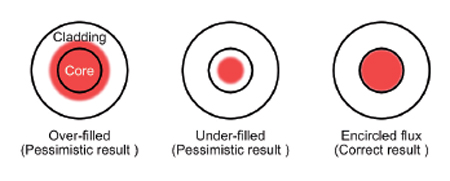 Le meilleur moyen de réduire la variabilité et de contrôler les conditions d’injection pour bénéficier de résultats de test les plus précis et reproductibles est d’utiliser la méthode de test EF (flux inscrit). Maintenant requis pour le test de fibre optique multimode par les normes TIA et ISO/CEI, le test EF injecte la lumière avec plus de précision afin de mieux répondre aux conditions d’injection laser d’un VCSEL sans sous-remplir l’âme et fournir des mesures de perte trop optimistes.