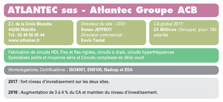 2018 : nous prévoyons de réaliser un CA de 17 M€. Nous continuerons à déployer une politique d’investissements soutenue. Pour 2018 les investissements suivants ont déjà été engagés : un centre de pressage entièrement automatisé, une machine de bouchage résine pour les vias traversants mais également pour les trous borgnes ; une brosseuse automatique, une HAL. Nous travaillons déjà sur les investissements qui seront engagés sur 2019 et 2020.