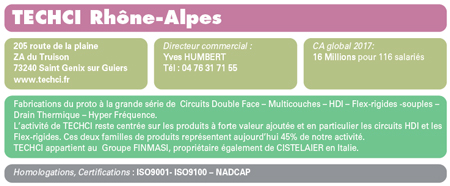 Afin de soutenir notre croissance, nous avons renforcé notre équipe commerciale, nous prévoyons également d’embaucher dans différents secteurs (production, qualité, industrialisation…) TECHCI Rhône-Alpes sera présent à Electronica et à Mecatronic.
