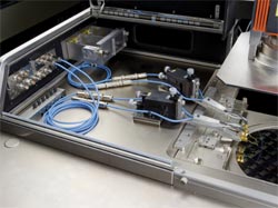 Les nouveaux kits de câblage de Keithley ont été étudiés dans le but de répondre à ces différentes conditions. Quel que soit le type de mesure effectué, il n’a plus alors aucune manipulation à faire car aucun changement n’est nécessaire au niveau des sondes ; les câbles peuvent être simplement déplacés d’un groupe d’instruments à un autre, ce qui facilite la commutation entre les trois types de mesures d’où une simplification notable du processus de caractérisation. De plus, il est possible de faire des modifications de paramétrage alors que les aiguilles des sondes sont en contact avec le chip ce qui réduit d’autant les risques de détériorations et conserve la même impédance de contact pour les trois types de mesures.