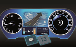 Renesas Electronics Corporation, l’un des principaux fournisseurs de solutions avancées à base de semi-conducteurs, étend la gamme évolutive de la famille de système sur puce RCar, afin de répondre à la demande croissante de combinés d’instruments graphiques de grande taille dans toutes les catégories de véhicules avec l’introduction du R-Car E3 pour réaliser des graphismes 3D haut de gamme sur la plus plupart des écrans utilisés pour les combinés d’instruments automobiles - 12,3 pouces, 1 920 x 720 pixels. Combinant les capacités de rendu 3D fluides avec le DSP audio intégré et d’autres fonctions périphériques, le SoC mono-puce prend en charge les combinés d’instruments ainsi que les systèmes d’information multimédia du véhicule (IVI) avec l’affichage audio et d’autres possibilités.
