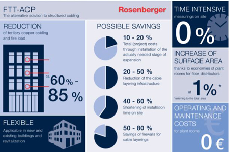Les économies de coûts sont un critère important pour l’utilisation de solutions FTTACP. Cela s’applique à la planification complète de l’infrastructure, qui commence avec le cahier des charges, puis les phases de planification et de mise en œuvre, jusqu’à l’installation et la maintenance sur toute la durée de vie de l’infrastructure.
