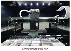 Les moteurs linéaires, choisis pour leur efficacité aux registres de la rapidité, de forte accélération, et leur répétabilité accrue de mouvements. Cette technologie permet d’être rapide dans les déplacements de façon répétable sans sacrifier la précision ;