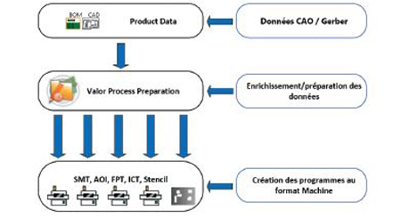La communication avec la Valor Part Library. L’utilisation des références au format VALOR PART LIBRARY permet d’utiliser la géométrie nominale du fabricant pour l’analyse DFA, les librairies des machines CMS / AOI, les données de conception de pochoir, l’analyse de test à sondes mobiles et les instructions de travail.