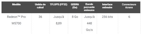 Les capacités et fonctions clés de l’AMD Radeon™ Pro W5700 sont :