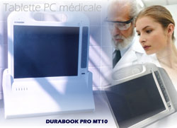 La Tablette DURABOOK MT10 intègre la technologie Intel Health ultra basse tension (ULV) U2100 1.06 GHz, une mémoire vive configurable en usine de 512 Mo à 2 Go, un disque dur configurable en usine de 60Go à plus de 320 Go SATA (SSD 32GB en option) protégé contre les chocs et les vibrations.
