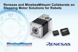 Renesas Electronics Corporation, un fournisseur majeur de solutions avancées de semi-conducteurs, et MINEBEA MITSUMI Inc. (MinebeaMitsumi, TSE : 6479), premier fournisseur mondial de moteurs pas à pas (Note 1), ont annoncé aujourd’hui le développement conjoint de moteurs pas à pas dotés de résolveur (capteur d’angle) et de solutions de commande de moteur optimizés pour une utilisation dans les robots, les équipements de bureautique et les équipements de soins médicaux et associés à la santé. Ces applications nécessitent des moteurs avec une commande de moteur plus précise, des facteurs de forme miniaturisés et une résistance améliorée aux influences de l’environnement. En travaillant en collaboration, Renesas et MinebeaMitsumi ont mis au point des moteurs pas à pas utilisant des capteurs de type résolveur et des solutions de commande de moteur qui répondent à ces exigences d’applications.