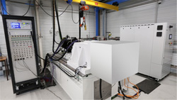 Le banc e-Motor permet de tester machines électriques et onduleurs dans des environnements climatiques à l’aide d’un caisson climatique permettant de reproduire des variations thermiques pouvant aller de -45°C à +120°C en ambiant et de -30°C à +120°C pour les fluides. Pour ce qui est de l’alimentation électrique, ce banc est doté d’un simulateur batterie haute performance : 250 kW / 1000V / 1000A.