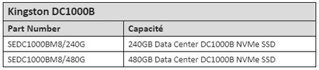 Le DC1000B est disponible dans des capacités de 240 Go et 480 Go1 et bénéficie d’une garantie limitée de cinq ans, d’un support technique gratuit et de la fiabilité légendaire de Kingston.