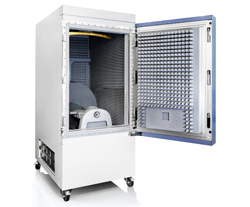 L’enceinte d’essais R&S ATS1800C permet de tester des appareils dont la masse peut atteindre jusqu’à 8 kg. Elle est donc parfaitement adaptée aux tests d’une variété d’équipements actifs ou passifs : des petits modules à puces électronique jusqu’aux tablettes et aux ordinateurs portables, en passant par de petites cellules. Le dispositif de déclenchement matériel permet d’effectuer des mesures durant le déplacement en continu du positionneur 3D de haute précision. Ce qui permet de réduire le temps de mesure d’un facteur 5 à 10.