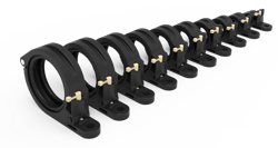 Le collier de serrage P-Clamp de TE est composé de deux parties articulées, moulées dans un matériel en PEEK de haute technologie alliant la solidité du métal à une grande légèreté. Cela signifie que le collier peut être installé sur les équipements plus tôt dans le processus d’assemblage que les pièces traditionnelles, avant l’apparition des contraintes d’accès liées aux structures secondaires. Un faisceau de câbles peut alors être placé dans le support du collier de serrage et sécurisé grâce au mécanisme de verrouillage. Grâce au design ergonomique du mécanisme de verrouillage, aucun outil n’est nécessaire pour refermer les deux parties ni à l’inverse, pour déverrouiller le collier dans le cas de devoir ajuster la position du faisceau de câbles.