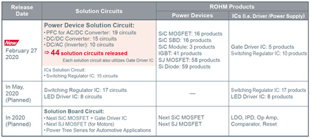 44 circuits de solutions sont actuellement disponibles ; avec de futurs circuits de solutions supplémentaires qui élargissent la gamme d’appareils d’alimentation applicables et des CI de drivers de LED. ROHM prévoit également de sortir des modèles de simulation thermique dans un proche avenir.