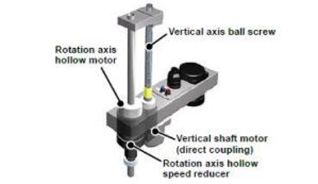Les innovations portant sur l’amélioration du contrôle du mouvement de la pointe contribuent à améliorer la vitesse et la précision du positionnement. En effet, le processus de report de composant exige que le mouvement vertical, ou de l’axe Z, ainsi que le mouvement rotatif, de l’axe R, soient parfaitement contrôlés. Historiquement, c’est une vis-mère actionnée par un moteur à engrenage vertical qui contrôle le mouvement en Z, tandis que l’axe R est actionné par une courroie depuis le moteur à arbre tournant. Les deux transmissions par courroie peuvent désormais être remplacées par des entraînements directs afin d’éliminer toute usure et tout risque de rupture ou d’étirement des courroies. La précision à long terme s’en trouve allongée et la maintenance réduite. Yamaha a ainsi mis au point un mécanisme d’entraînement direct par vis à billes pour contrôler l’axe Z sans courroie. C’est là le fruit de son expérience en matière de robots à axe unique, et de l’association d’un moteur creux et d’un réducteur de vitesse coaxial qui aide à la maîtrise du mouvement de l’axe R.