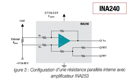 Les figures 2 et 3 présentent la configuration des résistances parallèles en montage externe et interne. Dans la figure 2, la résistance est montée à l’extérieur du dispositif, dans la figure 3 elle est intégrée au dispositif.
