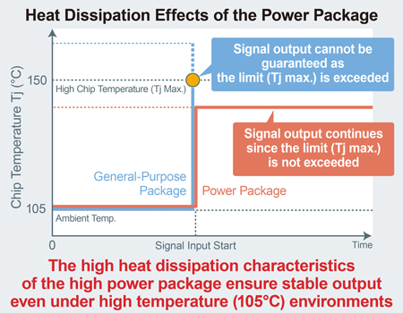 La série BD783xxEFJ-M est qualifiée pour répondre au standard de fiabilité automobile AEC-Q100 et supporte une température de fonctionnement maximale de 105 °C. En même temps, l’adoption d’un ensemble d’alimentation réduit la génération de chaleur même à volumes sonores importants, ce qui aboutit à une sortie audio stable sans compromettre le fonctionnement, même dans des conditions difficiles. En plus de la protection contre les surtensions, l’arrêt thermique et le verrouillage en cas de sous-tension sont intégrés, empêchant les dommages causés par la production anormale de chaleur et les bruits inattendus de claquement (craquement) pendant les interruptions d’alimentation de batterie.