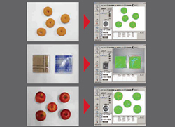 L’une des spécificités du système de vision de Yamaha Motor est son intégration avec les robots au moyen de cartes de vision, d’éclairage et de suivi incorporées dans le contrôleur de robot à plusieurs axes de la série RCX3. Cette intégration avancée permet une gestion unifiée de la commande du robot et de l’éclairage, et le traitement des images et des données de suivi du convoyage à l’aide du programme du robot uniquement, d’où un gain de temps considérable sur la configuration des équipements. En outre, grâce à l’ajout de la fonction de « détection des regroupements de pixels », le système peut désormais gérer des produits tels que les denrées alimentaires et les vêtements, qui varient davantage en forme et en taille par rapport aux produits industriels, d’où un élargissement du panel d’applications possibles.