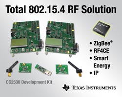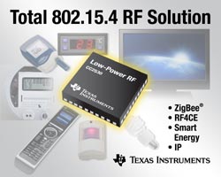Texas Instruments Incorporated (TI) (NYSE : TXN) annonce une solution SoC (System-on-Chip) RF 2,4 GHz complète, conforme à la norme IEEE 802.15.4 et compatible avec de nombreuses applications : réseaux ZigBee PRO, systèmes de commande à distance ZigBee RF4CE, profils Smart Energy, domotique, surveillance environnementale et applications médicales sans fil. Contrairement à ses concurrentes, la solution CC2530 de TI offre jusqu’à 256 Ko de mémoire flash, autorisant ainsi le développement de multiples protocoles. Et grâce aux différents logiciels et outils téléchargeables gratuitement, les clients disposent de tous les éléments nécessaires au développement complet de leurs applications. Pour plus d’informations, consultez la page Web http://www.ti.com/cc2530-prwe.