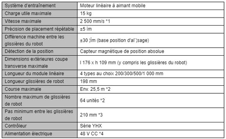 *1 Si la charge utile dépasse 10 kg, la vitesse maximale plafonnera à 2 000 mm/s.