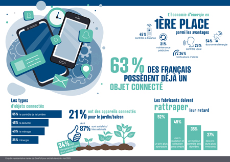 Les produits connectés se sont faits une place importante dans la vie quotidienne des Français puisque 63% d’entre eux déclarent posséder un appareil connecté chez lui. Ils se laissent principalement séduire par le contrôle de l’éclairage à distance à 65% selon une étude OnePoll et reichelt elektronik qui a interrogé 1 000 consommateurs français. Ce marché en devenir a d’ailleurs de nombreuses cordes à son arc puisque le marché du jardinage intelligent est en plein essor avec même 1/3 des intentions d’achat pour cet été.
