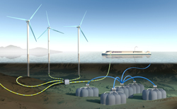 REMORA a été imaginée pour être installée en mer dans des eaux peu profondes (70 à 200 mètres de profondeur), à proximité de sources d’énergie renouvelable telles que des éoliennes ou des panneaux solaires afin de stocker l’énergie qu’ils produisent par intermittence.