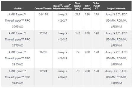 Boostés par les technologies AMD PRO, les processeurs AMD Ryzen™ Threadripper™ PRO offrent des performances de pointe, une bande passante exceptionnelle, ainsi que l’intégration de fonctions de sécurité et de gestion de classe entreprise,