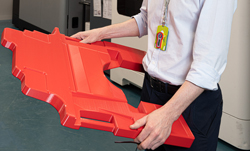 BAE Systems a également réussi à identifier avec succès des applications de fabrication traditionnelle susceptibles d’être améliorées, ou dans certains cas remplacées, avec des matériaux d’impression 3D haute performance. Cela inclut l’utilisation de matériaux ABS et ASA durables pour toute une série d’équipements au sol, tels que les revêtements de sol du cockpit de l’avion de chasse Typhoon. « Avec notre F900, les revêtements thermoplastiques peuvent être fabriqués beaucoup plus rapidement que les versions fabriquées par des moyens conventionnels. Ils sont également beaucoup plus légers et plus faciles à déplacer pour le personnel au sol, ce qui améliore l’efficacité des processus de maintenance, de réparation et de révision. Un autre avantage est qu’ils peuvent être imprimés en rouge, la couleur de tous les composants « à retirer avant le vol », ajoute-il.
