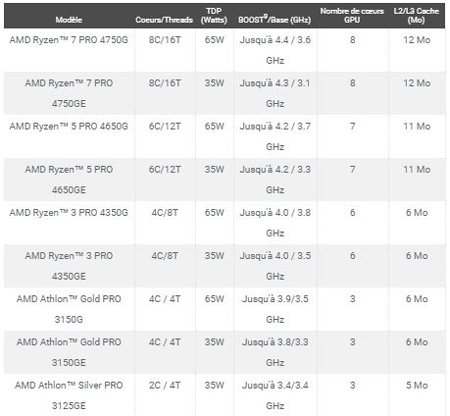 La gamme AMD Ryzen PRO 4000 Series offre :