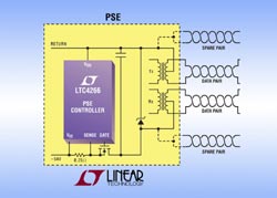 Linear Technology Corporation présente le LTC4266, un contrôleur PoE à quatre ports, pour les équipements fournisseurs d’énergie (PSE) nécessaires pour obtenir les niveaux de puissance propriétaires (25,5 W) de la norme IEEE 802.3at. Les applications PoE de la nouvelle génération demandent plus de puissance pour répondre aux caractéristiques, tout en augmentant le rendement dans le but d’être plus « vert » et de réduire les coûts.