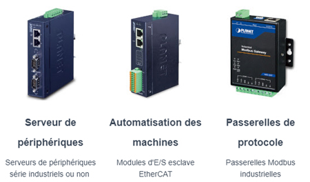 La solution d’automatisation industrielle de PLANET a été développée pour aider à la mise en réseau IP dans les domaines de l’Industriel 4.0 et de l’IoT via la connexion série. La gamme Planet de produits d’automatisation industrielle comprend des serveurs de périphériques série RS232 / RS422 / RS485, des passerelles Modbus, des modules d’E / S esclaves EtherCAT et des passerelles série sur cellulaire, qui permettent chacun de convertir et de transformer des données utiles pour une analyse plus approfondie afin d’optimiser le fonctionnement et la gestion de l’usine.