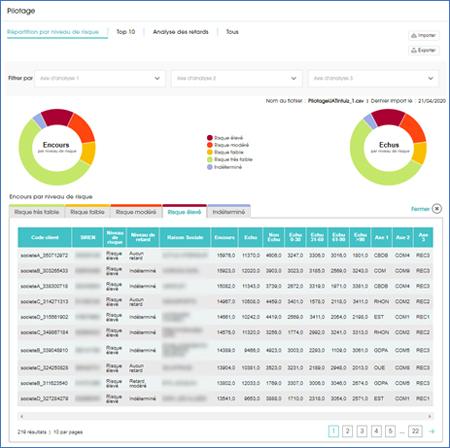 PILOTAGE permet aux entreprises d’identifier les risques liés à la solvabilité de leurs clients et de prioriser les actions de recouvrement pour faire rentrer plus rapidement de la trésorerie.