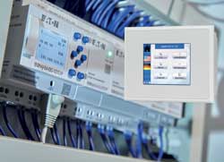 Mise en réseau simplifiée : via l’interface Ethernet intégrée, l’easyE4 se connecte à n’importe quel routeur ou répéteur LAN/WLAN ou dLan, permettant la mise en réseau avec l’IIoT. Les informations fournies par le module logique peuvent ainsi être affichées via des pages Web HTML-5 ou visualisées via le serveur Web « easy » intégré. L’utilisateur peut créer ses propres tableaux de bord et accéder à easyE4 par smartphone, tablette ou ordinateur portable. Il peut également connecter directement des afficheurs de tout type via Ethernet, en utilisant le protocole ModBus TCP par exemple. De plus, jusqu’à 80 appareils easyE4 peuvent communiquer dans un même réseau via l’interface Ethernet et la fonction réseau NET intégrée.