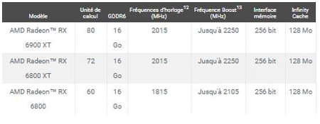 Les cartes graphiques AMD Radeon™ RX 6800 et Radeon™ 6800 XT sont prévues pour une disponibilité chez les revendeurs ou sur AMD.com dès le 18 novembre 2020 à un prix public conseillé de 579 dollars américains et 649 dollars américains respectivement. Les AMD Radeon RX 6900 XT sont attendues pour le 8 décembre 2020 au prix public conseillé de 999 dollars américains.