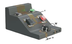Dimensionnement et position : Valeur minimale des distances entre les pistes conductrices (a) : 150 μm de largeur minimale des pistes conductrices (b) : 150 à 250 μm Rayon (r) : 0,2 mm