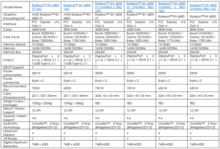 Les produits de référence de la série Radeon™ RX 6800 devraient être disponibles à partir du 18 novembre 2020, et la série Radeon™ RX 6800 GAMING TRIO devrait être disponible à partir du 25 novembre 2020 en France.