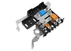 Pour le système hybride des Fiat Panda, Fiat 500 et Lancia Ypsilon Mild Hybrid, MTA a développé un nœud de dérivation 3 voies spécifique, doté d’un couvercle. Le nœud est vissé sous le plancher de la voiturSTLS e, à l’extérieur du véhicule et, grâce aux joints en silicone, son étanchéité est assurée, conformément à l’indice de protection IP69K. Relié par une broche filetée directement à la batterie auxiliaire qui se trouve à l’intérieur de l’habitacle il alimente le moteur électrique et le système de charge via 2 câbles de sortie.