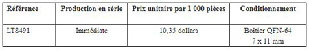 Le contrôleur LT8491 peut automatiquement compenser la température à l’aide d’une thermistance externe couplée thermiquement à la batterie. L’interface I2C assure un contrôle complet du chargeur et gère les valeurs de puissance, tension et courant en entrée/sortie. Disponible en boîtier QFN 64 broches de faible épaisseur 7 x 11 x 0,75 mm, le LT8491 fonctionne sur la plage de température comprise entre -40 et 125 °C.