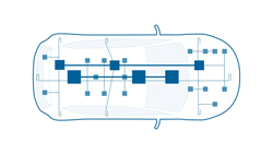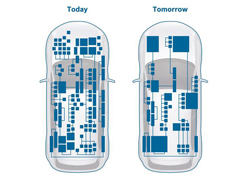 Les calculateurs haute performance seront incontournables à l’avenir à bord des voitures. C’est en effet vers ces nœuds centraux que convergent toutes leurs fibres nerveuses. Grâce à leur énorme puissance de calcul atteignant plusieurs milliards d’opérations par seconde, les ordinateurs centraux sont capables de traiter les immenses quantités de données requises pour la conduite autonome, les services basés sur des données et les mises à jour logicielles permanentes. Les logiciels devraient représenter à l’avenir près de 30 % de la valeur d’un véhicule, contre seulement 10 % actuellement (source : McKinsey). Cette évolution illustre bien la place qu’occuperont à l’avenir les bits et octets à bord des véhicules.