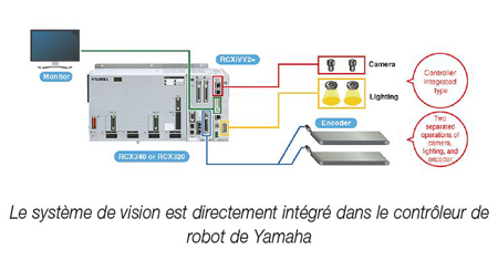 C’est à ce moment que le chef de projet a découvert une solution proposée par la section Factory Automation de Yamaha Robotics. Les caractéristiques de cette solution font que le système de vision robotique RCXiVY2+ de Yamaha est à la fois facile à intégrer et à configurer, rapide et précis. Le responsable a rapidement vu le potentiel de ce système face aux défis rencontrés dans l’usine.