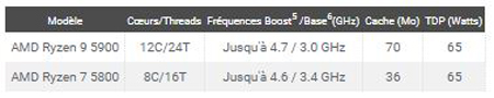 AMD annonce également des versions à moindre TDP de ses processeurs primés, les AMD Ryzen™ 9 5900X et AMD Ryzen™ 7 5800X à destination exclusive des systèmes OEM. Propulsé par la nouvelle architecture « Zen 3 » et avec un TDP ramené à 65W, le processeur Ryzen 9 5900 offre des performances en moyenne 24% supérieures, sur certains jeux en 1080p, face à la génération précédente7.