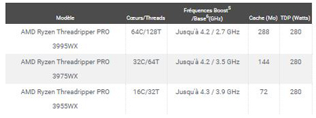 De plus, les processeurs AMD Ryzen Threadripper PRO seront désormais mondialement disponibles, et ce directement auprès des revendeurs et intégrateurs systèmes participants, avec une disponibilité prévue pour mars 2021. Les Ryzen Threadripper PRO proposent une palette de fonctionnalités inégalée pour les utilisateurs de workstations, avec jusqu’à 64 cœurs, 8 canaux de mémoire vive, le support des modules RDIMM et LRDIMM, 128 lignes PCIe® Gen 4 ainsi que des technologies de sécurité AMD PRO.