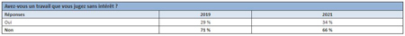 Si en 2019, 71 % des Français considéraient tout de même leur activité professionnelle comme ayant un certain intérêt, c’est beaucoup moins le cas en 2021 puisque ce chiffre a largement baissé pour atteindre les 66 %.