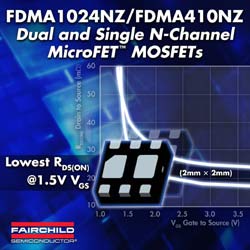 Fairchild Semiconductor présente ses MOSFET mono et double canal N FDMA1024NZ et FDMA410NZ qui allongent la durée de vie des batteries des téléphones portables, brosses à dents électriques et rasoirs.