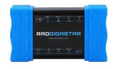 Le RAD-Gigastar est un instrument proposant 5 fonctions en une dans le même appareil. Dans un boitier solide et compact, il est pourvu de deux prises 100/1000BASE-T1, deux accès 100/1000BASE-T1 par modules SFP ( ce qui permet d’utiliser des fibres optiques), mais aussi de 2 voies FlexRay en réception seule de 6 voies CAN-FD et une voie LIN ainsi qu’un port USB 3.0 et une prise d’alimentation externe 5.5 à 60V continus.