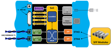 2x 100/1000BASE-T1 utilisant le PHY Marvell 88Q2112 PHY