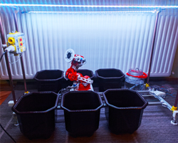L’anglais Ian Stephenson a créé une nouvelle méthode d’arrosage qui pressurise et atomise la source d’eau dans le fond du récipient et distribue l’eau de manière égale sur les différents niveaux de l’enceinte de culture.