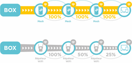 Le Mesh remplace le WiFi de la box très simplement et garantit une bonne couverture avec un seul réseau unifié qui fonctionne parfaitement, partout, tout le temps.